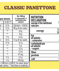 Ingredientes: Harina De Trigo*, Pasas De Uva, Azúcar, Frutas Confitadas, Grasa Vegetal (Pulpa De Palma), Huevo Entero, Yema De Huevo, Manteca (Crema De Leche), Extracto De Malta, Sal, Aceite Vegetal, Emulsionante: Monoglicéridos Y Diglicéridos De Ácidos Grasos (Ins 471), Aromatizantes Idénticos Al Natural Y Conservador: Propionato De Calcio (Ins 282) Y Colorante Beta-Caroteno Sintético (Ins 160A(I)). Contiene: Gluten (Trigo), Huevo Entero, Yema De Huevo, Manteca (Leche), Extracto De Malta (Cebada) Y Monoglicéridos Y Diglicéridos De Ácidos Grasos (Soya). Puede Contener: Maní, Almendras, Avena, Avellana, Castaña De Cajú, Castaña De Brasil, Pistacho, Centeno, Derivados De Soya Y Sésamo. * Argentina: Harina Enriquecida Ley 25.630 Con Sulfato Ferroso: 30 Mg/Kg, Ácido Fólico: 2,2 Mg/Kg, Tiamina (Vitamina B1): 6,3 Mg/Kg, Riboflavina (Vitamina B2): 1,3 Mg/Kg Y Niacina: 13 Mg/Kg. Paraguay: Harina De Trigo Enriquecida Con Hierro Y Vitaminas. Uruguay: Harina De Trigo Enriquecida Con Hierro Y Ácido Fólico. Peru: Harina De Trigo Fortificada Según Decreto Supremo Nº 012-2006-Sa. Chile: Harina De Trigo Fortificada. Ingredients: Wheat Flour, Raisins, Sugar, Candied Fruits, Vegetable Fat Palm Base, Natural Yeast (Leaven), Whole Egg, Egg Yolk, Butter, Malt Extract, Salt, Vegetable Oil, Emulsifier: Mono- And Di-Glycerides Of Fatty Acids (E-471), Flavors, Preservative: Calcium Propionate (E-282) And Beta-Carotene Synthetic Color (E-160A(I)). Contains Gluten. Contains Traces Of: Peanut, Almonds, Oat, Hazelnut, Cashew Nut, Brazil Nut, Pistachio, Rye, Soy Derivatives And Sesame. The Mentioned Validity Refers To The Product Still Closed, If Stored In Dry, Cool And Odorless Place. Consume After Opened. *Designación Inal: Panettone