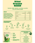 Vital Greens Smoothie, a powerhouse blend of spinach, broccoli, cucumbers, zucchini, bananas, dates, and ginger. Simply blend with water and ice for a refreshing and healthy treat.